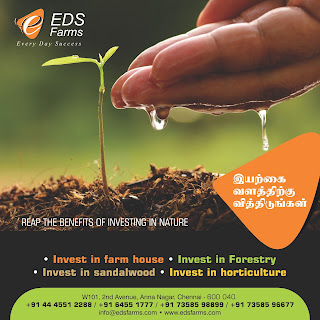 EDS Farms offers you a lucrative opportunity to maximize your profits by investing in sandalwood plantation. Come indulge in the sweet fragrance of growth & prosperity. “your Land Your Tree, Our Service” is our business philosophy.